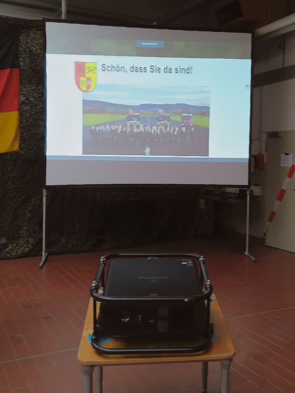 - Panasonic-Beamer mit 12000 ANSI-Lumen und Standleinwand.